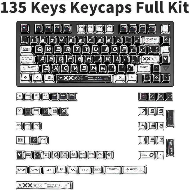 White Keycaps: The classic black and white complementary look of the keycaps color design, simple but not simple, decorate your keyboard and enhance your life. The manga-inspired shape design is very expressive of your personality, and your friends will surely praise your aesthetics.