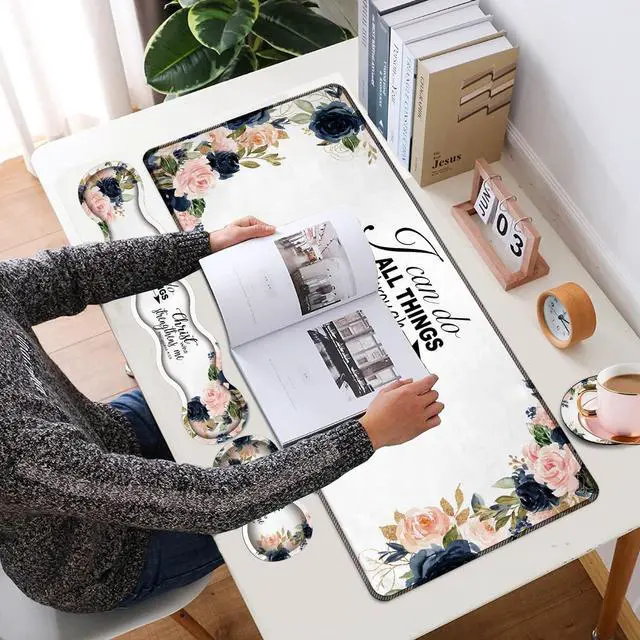 Product Description: Large mouse pad and wrist rest for keyboard and mouse Fun and beautiful design to brighten up your workspace. Beautiful, well-made, more comfortable when working or playing. Plenty of space for professional gaming or office use.