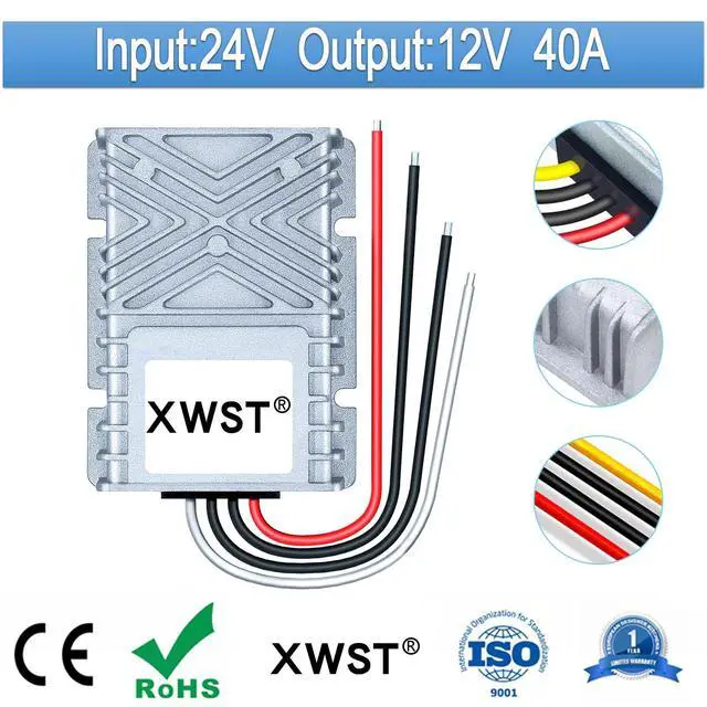 XWST DC 24V to DC 12V Step Down Reducer Regulator Buck Converter Output 40A 480W Power Converter Module for Auto Car Truck Vehicle Boat Solar System (40A)