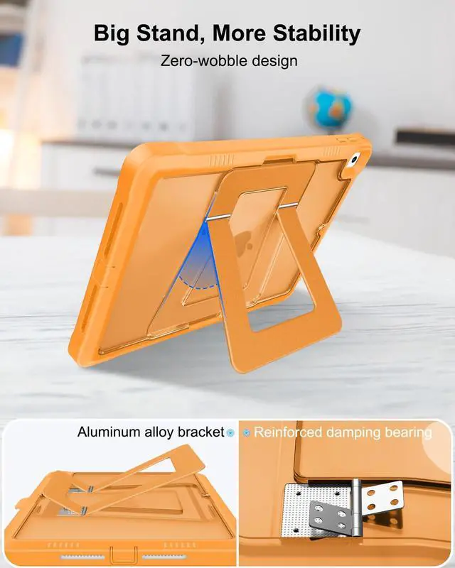 Super Stable Kickstand: Combined aluminum alloy bracket with damping alloy bearings, adjusting the angle freely, and providing extremely stable support for the iPad 6th generation case. Whether it's typing, browsing news, reading books, or watching short videos, you can enjoy its super stability in any situation ^^ Bulit-in