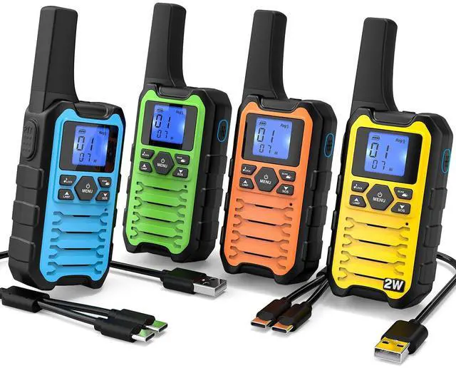 Quick-Pair in seconds Press one key to sync and talk; ideal for classrooms, church ushers, event staff, warehouses and camping caravans. ^^ Clearer indoors with 2W FRS Stronger coverage through halls, aisles and high-rise corridors; switch to a less-crowded channel and add a privacy code to cut cross-talk. ^^ Rechargeable power that lasts Each radio includes 31500mAh AA NiMH; auto battery-save helps support all-day use. ^^ USB-C split charging 1-to-2 USB-C cable charges two radios from one port (power bank, car or wall) for quick top-ups on the go.