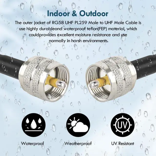 ^^ [Widely Used]: RG58 pl259 cable suitable for cb ham radio, hf amateur radio, marine boat VHF radio, antenna, swr meter, surge protector, Walkie Talkies, etc.