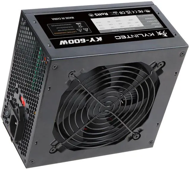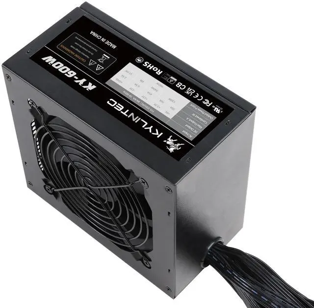 Non-Modular DesignKYLINTEC KY-600W power supply eliminates clutter and ensures neat cable management, promoting optimal airflow and a much cooler system. ^^ Connectors 1 x 24pin Main Power, 1 x 4+4pin 12V, 2 x PCI 6+2pin, 4 x SATA, 4 x PATA. 1 x FDD ^^ Single 12V Output for Higher Power Usage, power supply delivers reliable and stable power, even in demanding situations that require high amperage. ^^ Large 120mm fan provide low noise auto thermally control ^^