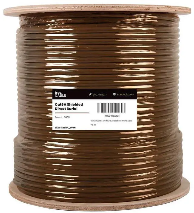 [High Performance] 23 AWG Cat6A LAN cable with overall foil shielding (F/UTP) to eliminate EMI and crosstalk. Supports 1G/10G speeds up to 328ft and bandwidth up to 750 MHz. Fully compatible with PoE++ 802.3 bt (100W) for high-power applications. ^^ [Hassle Free Packaging] 500 feet (152 meters) comes conveniently pre-spooled on a tangle free, easy pull reel so you dont have to worry about getting behind on your next job. ^^ [Solid Bare Copper Conductors] Pure bare copper conductors offer superior signal strength, conductivity, and flexibility compared to cheaper copper clad aluminum (CCA) options.