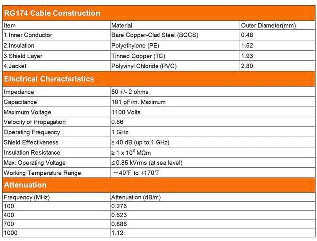 • Cable Type: RG174,Cable Length: 16.4 Ft,Connector: TS9 Male to TS9 Female,Impedance: 50 Ohm