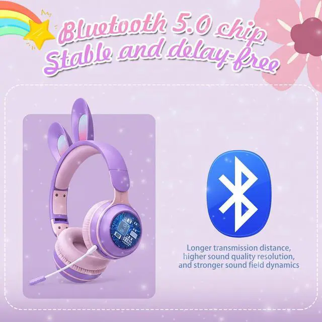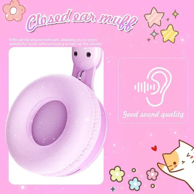 Kid-Friendly DesignThese Bluetooth headphones are specially designed for kids with adorable cat ears and paws to make them look stylish and fun. ^^ Wireless ConvenienceThese kids' wireless headphones connect to any Bluetooth-enabled device with ease, allowing kids to enjoy their music or video games wirelessly. ^^ Superior Sound QualityThese Bluetooth headphones for kids feature powerful and balanced audio technology, delivering crystal-clear sound for an immersive experience. ^^ Safe Listening These Bluetooth headphone ear cups are designed to be safe for kids' ears, limiting the maximum volume to protect their hearing from damage. ^^ Ideal Gift ChoiceThese wireless headphones for kids make an excellent gift for any child who loves music, gaming, or watching videos on their devices, making them a perfect birthday or holiday present.