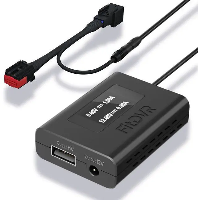 What vehicle model is it suitable forFor Land Rover and Jaguar vehicle models. Please confirm whether it is a 8-pin connector on the back or front of the rearview mirror bracket before purchasing. ^^ 5V and 12V Output The input voltage is 12V, and the output voltages are 5V (USB cable) and 12V (DC 3.5 mm cable). ^^ 6 Output Cables IncludedIncludes Mini USB (5V) x1, Micro USB (5V) x1, USB-C (5V) x1, RJ11 (12V) x1 and DC 3.5 mm (12V) cable x2. ^^ LED displayUnlike other brands model, the FitDVR adapter has an LED screen that can display current and voltage.
