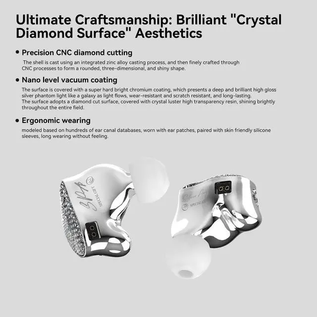 Exquisite appearance design with resin: SPA-SG IEM Using precision CNC diamond cutting to form a rounded and three-dimensional bright shape, the surface is covered with a super hard bright chrome coating and crystal gloss high transparency resin, which is wear-resistant and scratch resistant, and long-lasting