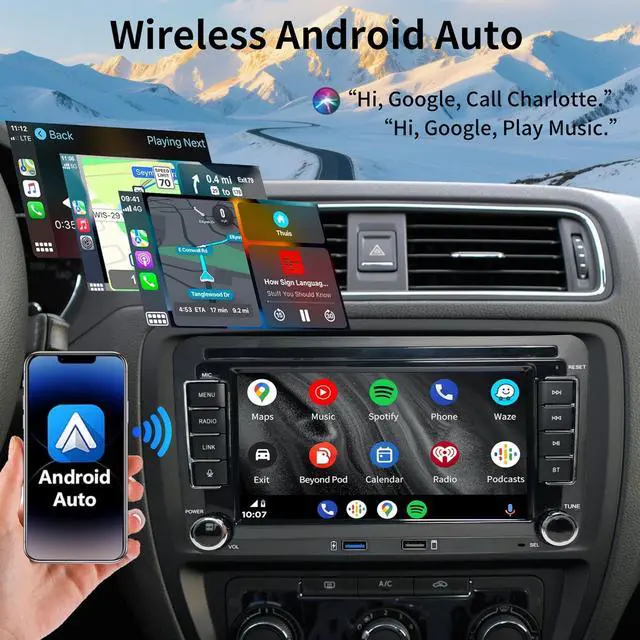 Upgrade your driving experience with a car stereo that blends cutting-edge technology, perfect compatibility, and user-friendly designspecifically crafted for your Volkswagen Golf, Jetta, Beetle, Passat, or Seat Polo. Tired of messy cables cluttering your dashboard? Our car stereo features wireless CarPlay and Android Autojust pair your phone via Bluetooth, and youll instantly access all your essential apps. Need to navigate to a new destination? Pull up Google Maps or Apple Maps with a voice command. Want to jam to your favorite playlist? Stream music from Spotify or Apple Music without plugging in a USB cord.