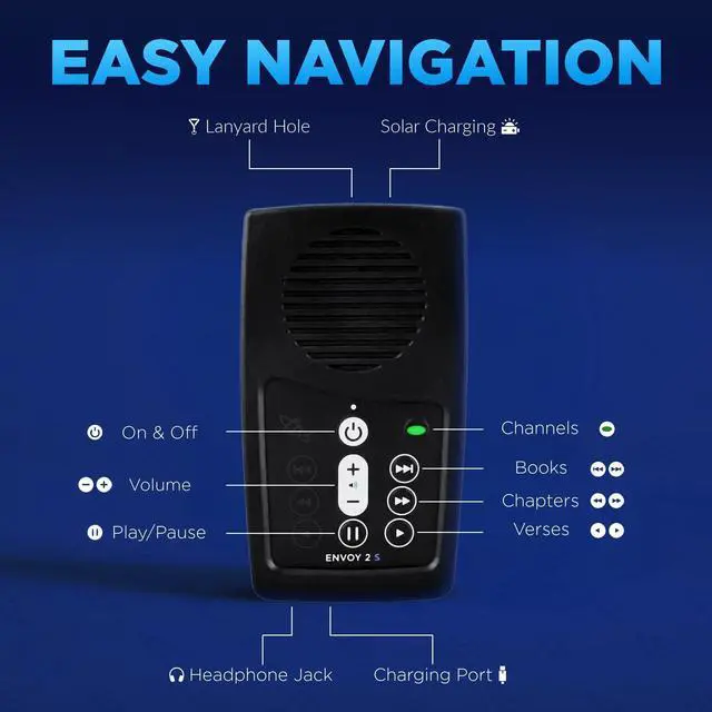 Everyone: Our Audio Bible Player is ideal for anyone seeking a deeper spiritual connection. Our simple controls make it ideal for children, the elderly, and the visually impaired. Anyone can easily pause and continue the reading or skip to their favorite chapters. Pausing playback bookmarks progress to be picked up at a later time. Speed up or slow down the narration to optimize your listening experience. ^^ Long battery for Listening Anywhere, Anytime: The Authentic MegaVoice Audio Bible Player is solar-powered with up to 14 hours of battery life, making it ideal for personal retreats, mission trips, or long days at the park. Just in case, a USB charging cable is provided for cloudy days. The Pathway does not include include solar charging. ^^ Discover the joy of scripture, unplug from distractions, and embark on a path of spiritual enrichment with our Authentic MegaVoice NKJV Audio Bible Player. Get yours today and experience the Word in a whole new way.