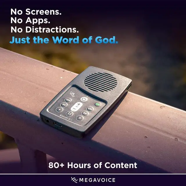 Portable Audio Bible Player: The Authentic MegaVoice New King James Version (NKJV) Solar Audio Bible Player, allows you to explore the wisdom of the Bible like never before. Listen to Alexander Scourby's engaging narration as you experience the entire Old and New Testaments in the palm of your hand. ^^