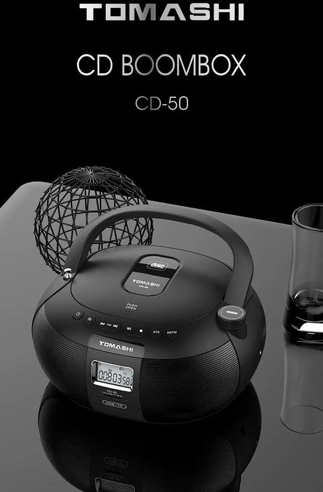 TOMASHI CD-50 Portable CD Player Boombox (Black) - AM FM Radio, Remote Control, USB/TF Card Slot, Stereo Speakers, LCD Display, Headphone Jack, AC/Battery Power