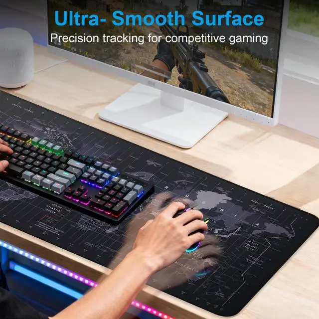 Please NOTE: No Power Adapter included with this Mouse Pad, Data cable ONLY. ^^ Large Gaming Mouse Pad-The keyboard XLL large mouse pads measures 35.44 * 15.75 inch (90*40CM) this large mouse pad has enough space to put laptop, mouse, keyboard, no need to move it often like the traditional small mouse mat, can move mouse freely.