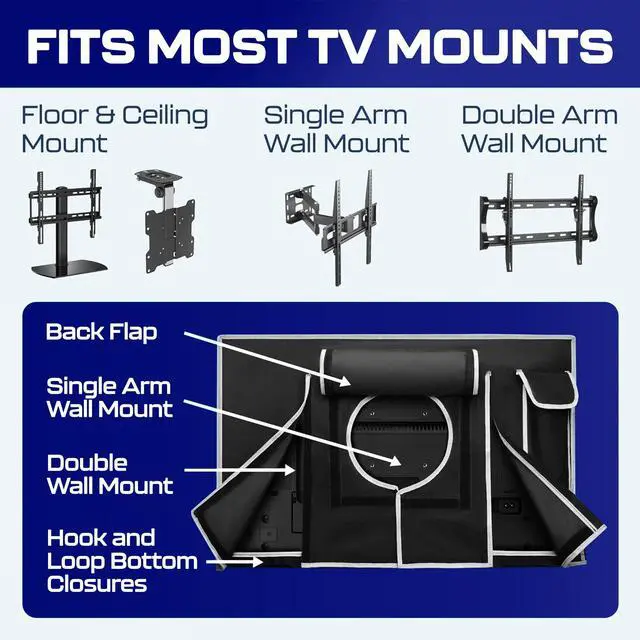 65 INCH TV COVER OUTDOOR WATERPROOF FITS PERFECTLY ON MOST MOUNTS - Your 65 inch tv cover or tv weatherproof case fits perfectly on most tv mounts. Our tv display protectors/ outdoor tv cover looks perfectly neat on your 60-65" outdoor TV protector