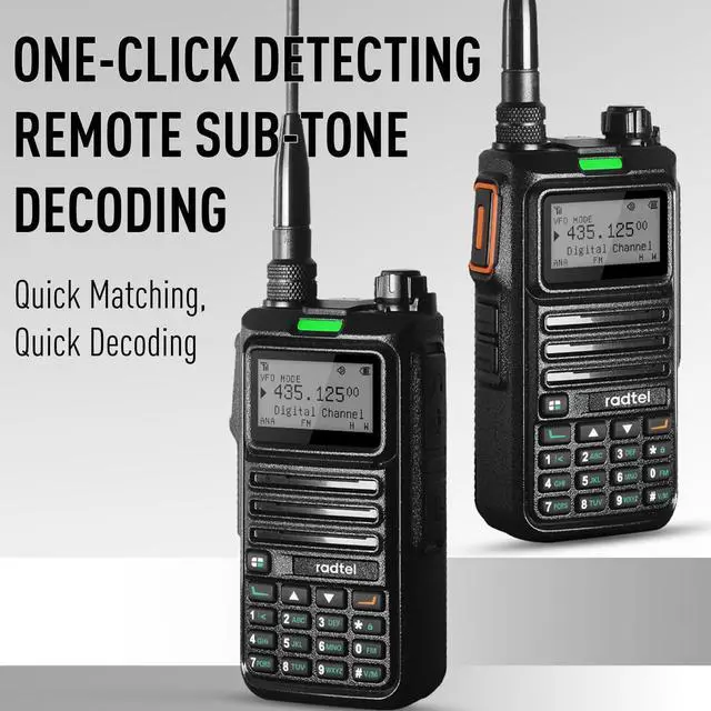 Wide Range: With its powerful transmission capabilities, the Radtel RT-4D DMR Radio ensures reliable communication over long distances. it can sends a SMS Text Messaging to other Rt-4D Radios, FM radio, One-key frequency measurement (analog) ^^ Equipped with Type-C quick chargingoffers multiple charging methods via USB, keeping your device powered up with efficiency and convenience anytime, anywhere. ^^ This device is capable of transmiting only within the FCC-authorized radio frequency bands 144-148Mhz/420- 450Mhz. lt does not have the capability to transmit outside the radio freguency bands.