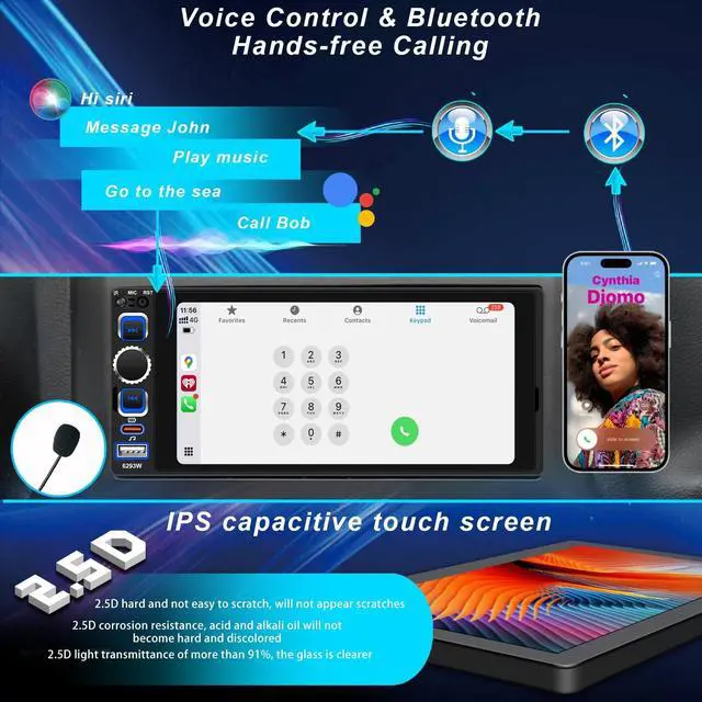1. Wireless Apple CarPlay & Wireless Android Auto - Seamlessly connect your smartphone without wires for hands-free control of navigation, music, and apps. ^^ 2. 6.8 inch IPS Touchscreen & Capacitive Touch Panel - Crystal-clear 1280x600 resolution with a responsive G+G 2.5D capacitive touch for easy, smooth navigation. ^^ 3. Upgraded Bluetooth 5.2 - Enjoy fast and stable Bluetooth connections for hands-free calling, music streaming, and syncing your contacts with ease. ^^ 4. FM Radio - Wide FM frequency range ( 87.5 -108MHz) for clear radio reception, bringing you your favorite stations and music on the go.