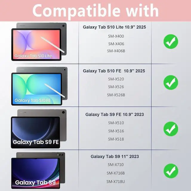 Keyboard Case for Galaxy Tab S10 Lite/S10 FE/S9/S9 FECompatible with Samsung Galaxy Tab S10 Lite 5G 10.9 inch (Model SM-X400/X406B) 2025 Release, Samsung Galaxy Tab S10 FE 5G 10.9 inch (Model SM-X520/X526B/X528U) 2025 Release, Samsung Galaxy Tab S9 FE 5G 10.9 inch (Model SM-X510/X516B/X518U), Samsung Galaxy Tab S9 11 inch (Model SM-X710/X716B/X718U) 2023 Release tablet. Please kindly check the model number before purchase.