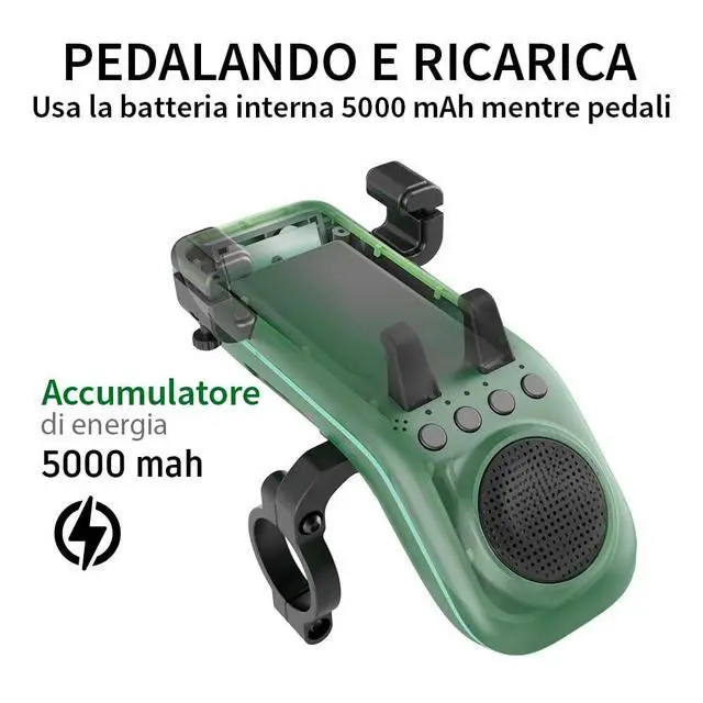 UPPEL Bike Speaker Phone Holder - Bicycle Headlight, Horn, Microphone, for Mountain and Road Cycling (Green)