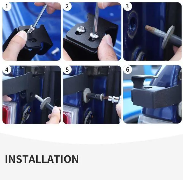 Installation instructions: 1. Remove the original screws. 2. Fix the mount with the original screw. 3. Tighten the original screw. 4. Place the side component mount. 5. Tighten the screws.