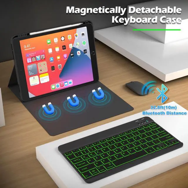 Magnetism Detachable Keyboard: The protective case features a Magnetism flip-top design with a detachable keyboard that attaches magnetically to the case. You can easily remove it from the tablet case to enjoy a typing distance of up to 10 meters. Easy to store and carry ^^