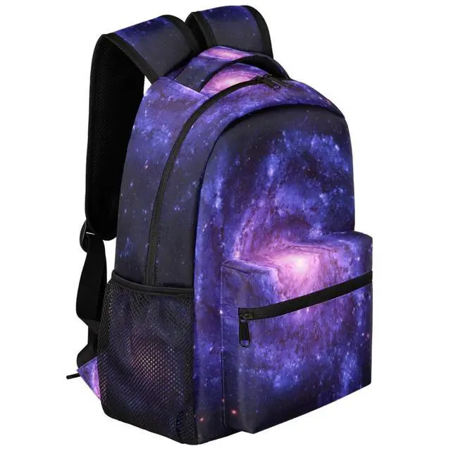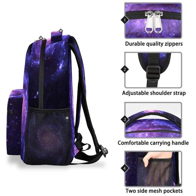 ^^ PRACTICAL COMPARTMENT: This space backpack has 1 extra large main compartments, 4 inner small pockets, 1 front zipper pocket and 2 side pockets. 1 main compartment roomy for daily necessities, electronics accessories. Front zipper pocket and two side mesh pocket, suitable for storing keys, mobile phones, stationery, umbrellas, water bottles or other small objects, make your items organized. ^^