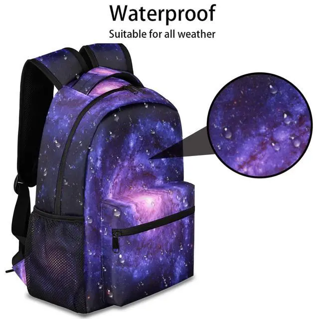 DURABLE MATERIAL: This space backpack are made of waterproof lightweight ultra-strong polyester, recycled material, heavy-duty and wearing-resisting. Sturdy and dual SBS zippers, quality tested to stand up to daily use. This bag owns a long life time and not easy to rip, ensure a secure and long-lasting usage every day. The empty bag is upright and the package type is stiff.