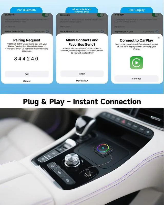 Wireless Transition: Upgrade from wired to wireless CarPlay effortlessly. The adapter auto-pairs every time you start your car, giving you a seamless, clutter-free driving experienceno extra apps or settings needed