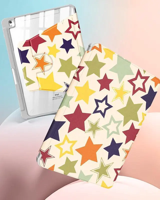 Uppuppy for iPad 9th/8th/7th Generation Case for iPad Air 3rd/ Pro 10.5 Case - 360 Rotating Stand Folio Smart Cover with Pencil Holder for Women, Colorful Stars for Apple Tablet 7/8/9 Gen 10.2 inch