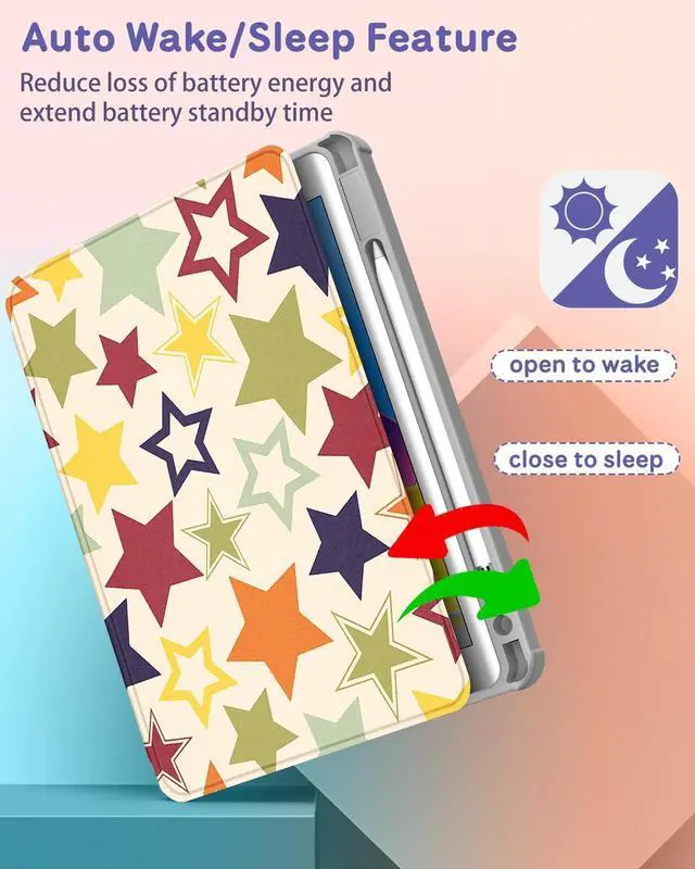 • Auto Sleep/Wake: Built-in magnetic strip, this for iPad 7/8/9/ case 10.2 inch with the smart funtion of auto sleep/wake, no wasting the power energy and extend your tablet standby time