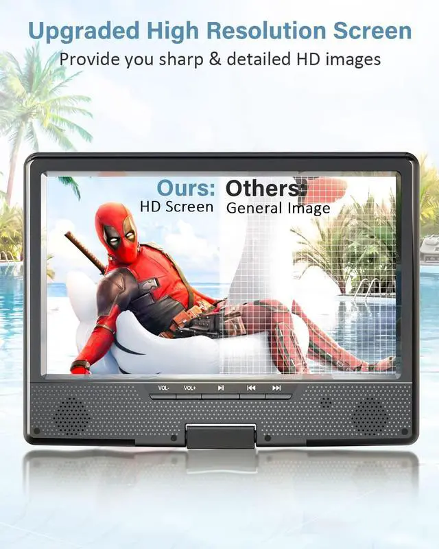 Swivel Screen: Featured with upgraded high resolution Screen and dual stereo speakers, Arafuna portable DVD player provides you with excellent audio-visual enjoyment. Thanks to the 270 rotating and 180 flipping eye protection screen, you can switch the angle to get your most comfortable viewing angle. This portable DVD player for car also can be swiveled as a tablet easily to be mounted to the car headrest for road trips ^^ 3