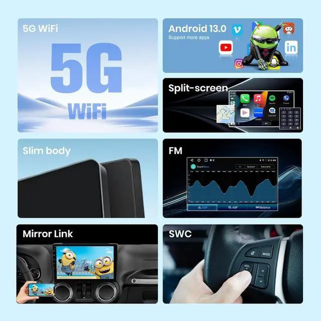 You can switch between various apps smoothly with minimal delay. ^^ Wireless CarPlay & Android AutoA smart way to use your phone in the car, simply connect your iPhone/Android phone to the Android car radio via bluetooth or USB Cable. Use smart voice assistant or touch the display, you can get directions, make calls, send and receive messages, and enjoy music etc. A smarter, safer and more fun way to use your phone in the car, and keep you stay focused, connected and entertained. ^^ Plug and Play This Jeep jk plug and play radio comes with Plug and Play power harness, Support Steering Wheel Control.