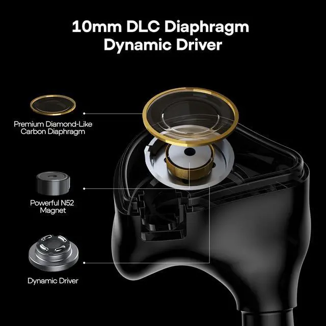 ^^: The diaphragm is made from a premium DLC (Diamond-Like Carbon) material, known for its exceptional performance. It excels in key areas such as transient response, high-frequency extension, and resolution, delivering impressive sound quality across multiple dimensions.
