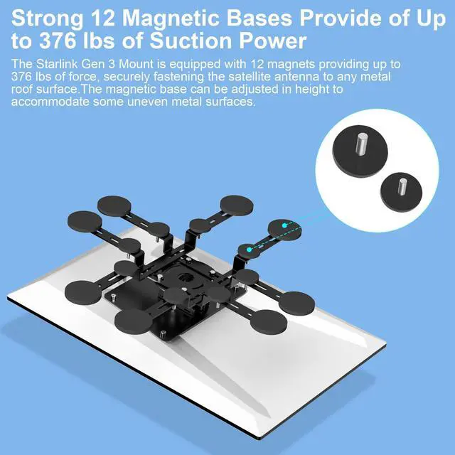 Antenna: The Starlink Performance Gen 3 magnetic base ensures a stable and precise installation. Its robust magnetic base adheres to any metal surface, making it ideal for mounting on home metal roofs, cars, RVs, yachts, and trucks. ^^ Angle-Adjustable Adapter for