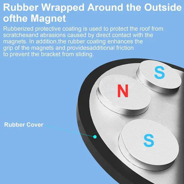^^ Rubber-Wrapped Protective Design: The magnetic base is encased in rubber to protect your vehicle's mounting surface from scratches while increasing the contact area with the metal for a more stable placement. ^^