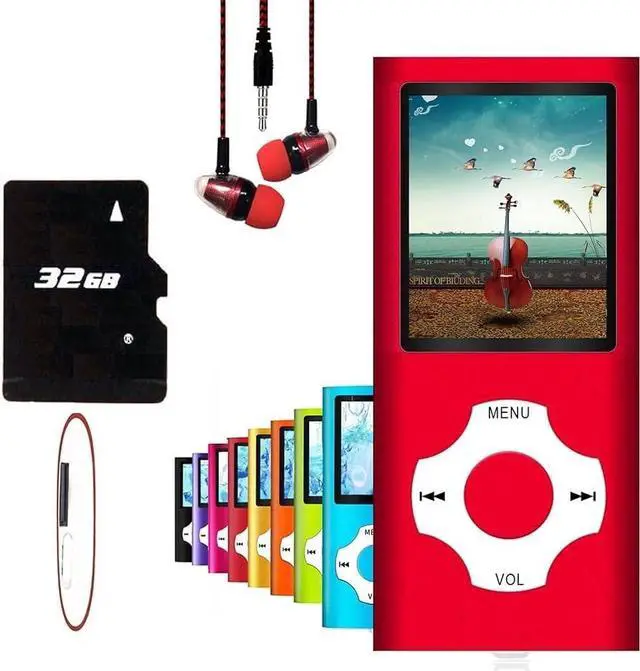• 32GB Large StorageThe portable MP3 player comes with a 32 GB memory SD card and support up to 128GB(not included). Play music with MP3/Voice record/FM Radio/E-book support TXT format/ photo view / video with AMV format.