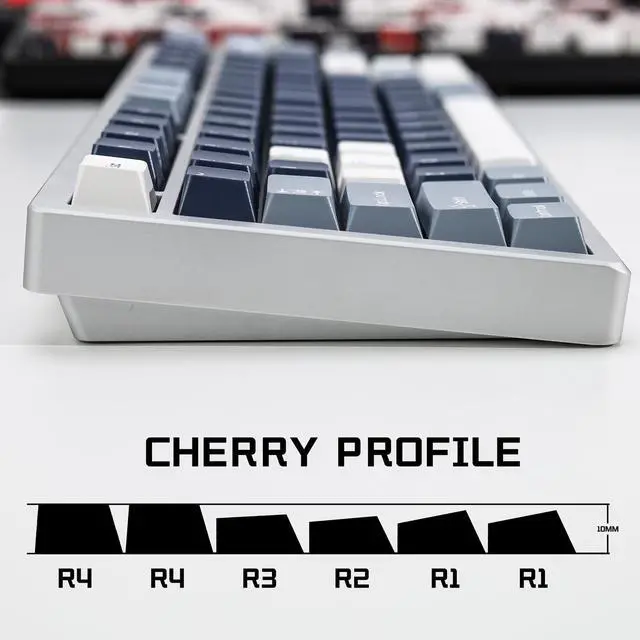 (Cherry Profile)Cherry Profile keycaps have a trapezoidal design with R1-R4 layout with different height and angle slope, which is ergonomic and makes typing easier