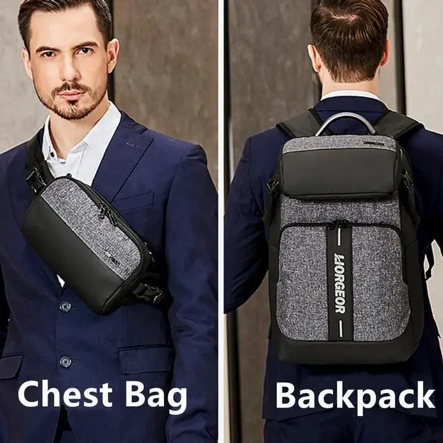 Detachable Waist Pack: Men's business backpack easily converts into a stylish waist pack, crossbody bag or shoulder bag, perfect for daily outings and shopping trips. Its multi-functional design caters to various needs and preferences. Simply remove the small pouch from the main backpack ^^