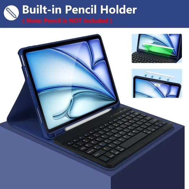 Pencil Holder: Keyboard case for ipad air 11 inch built-in pencil holder, easily to carry your pencil with your device(Note: Pencil not included). Hole in bottom of the pencil holder for easy access to your pencil ^^