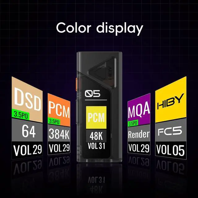 • HiBy FC5 Portable Hi-Fi DAC The HiBy FC5 is equipped with a 1.1 OLED color display for easy viewing of operation status at a glance.