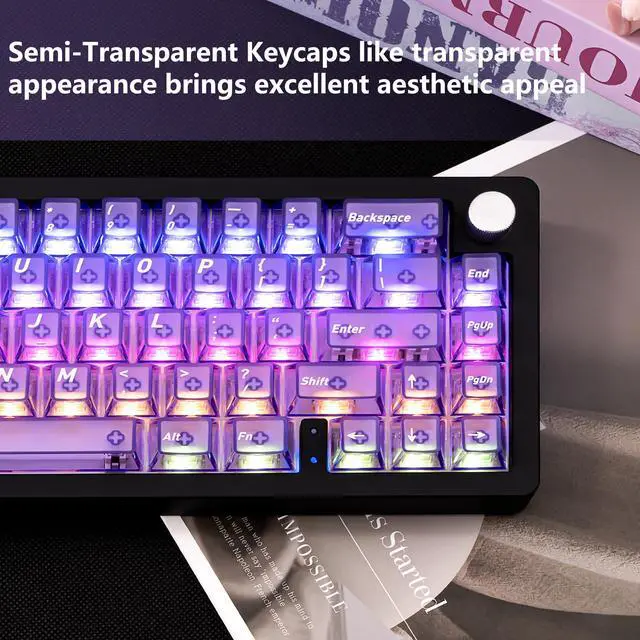 Premium PC+PBT MaterialCombines durable, scratch-resistant PBT with translucent PC for a stylish look. Matte finish offers a premium feel and resists shine and fading over time. ^^