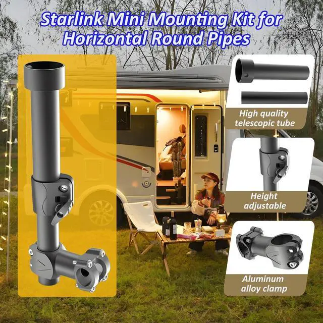 Quick-Install & Height-Adjustable Clamp: Securely mount and effortlessly adjust your Starlink Mini RV on most pipes and poles ( 0.8 - 1.1 in diameter). Achieves rock-solid stability in seconds for optimal signal ^^ Engineered for