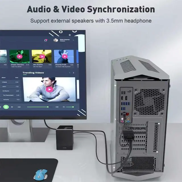 Note: This VGA to DP adapter can only convert VGA signals to DisplayPort signals, not bi-directional conversion. Please connect the VGA port to a signal source such as a desktop computer, TV box, video card, etc. and connect the DP port to a monitor, TV or projector, etc. Please do not reverse the connection ^^ 3.5 mm
