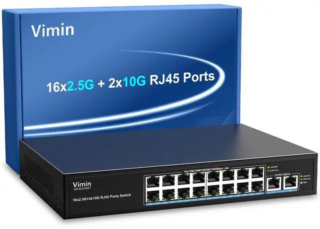 2.5G /10G 16+2 Port Aggregation - 162.5G & Dual 10G Base-T ports deliver ultra-fast 10/100/1000/2500Mbps auto-negotiation, perfect for bandwidth-intensive NAS/PC connections with future-proof 10G Ethernet scalability. ^^ Wire-Speed 10G Network Switch - Non-blocking 80Gbps switching capacity ensures zero packet loss for 4K streaming/gaming, supporting full IEEE 802.3 bz 2.5G /10G standards and backward compatibility with CAT5e/CAT6 cables. ^^ Flow Control - Dual-mode IEEE 802.3 x (full-duplex) & Backpressure (half-duplex) technology prevents data overflow, maintaining stable 10GBase-T connections for IP cameras/SMB servers. ^^ Plug & Play Network Switch - Auto-MDI/MDIX with dynamic LED indicators enables instant deployment - simply connect CAT6A cables for instant 10Gbps uplink without complex configurations.