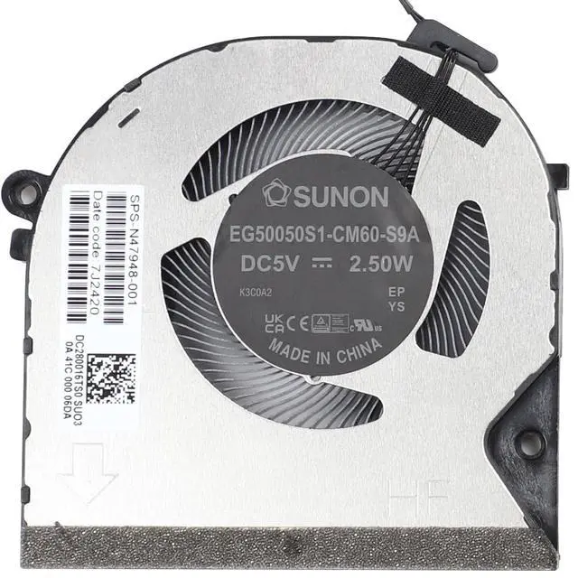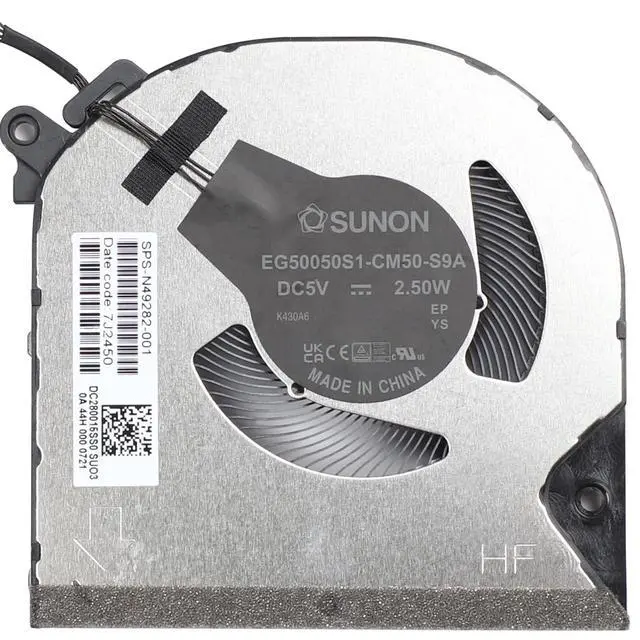 Replacement CPU+GPU Cooling Fan for HP Envy x360 15Z-FH 15-FH 15-FE 15-FH0013DX 15-FH0097NR 15-FE0013DX/0053DX/0073DX/0010CA/0017CA N49282-001 DC280015SS0, N47948-001 DC280015TS0, EG50050S1-CM50-S9A EG50050S1-CM60-S9A DC5V 2.5WB rand YAEHUYINGPower Connector Type 4 pinVoltage 5 VoltsWattage 2.5 wattsCooling Method AirCompatible Devices LaptopNoise Level 20 dBMaterial Metal, Acrylonitrile Butadiene StyreneMaximum Rotational Speed 5200 RPMManufacturer YAEHUYING