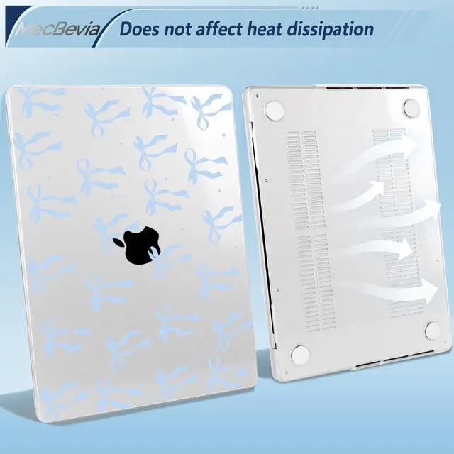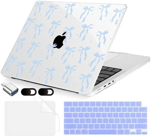 MecBevia Compatible with MacBook Pro 14 inch Case for M5 M4 M3 M2 M1 Pro/Max Chip (2026-2021), Hard Shell Cover with Keyboard Cover, Screen Protector, Webcam Cover & Type-C OTG, Blue Bow