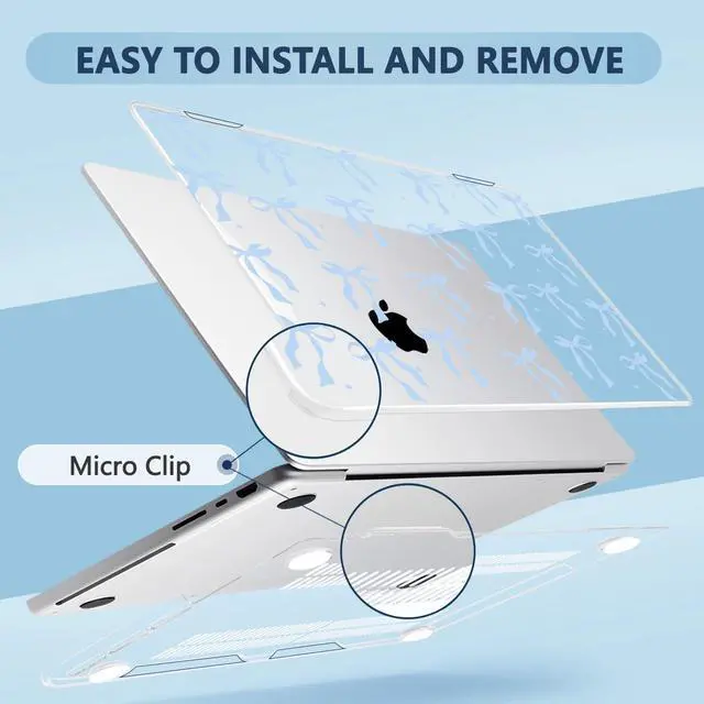 Installation: The package includes a protective case for the 14" MacBook Pro a keyboard cover, a screen protector, 2 webcam covers, and a Type-C adapter, offering complete protection. The micro-clips make installation and removal quick and easy, ensuring a secure fit while allowing convenient removal
