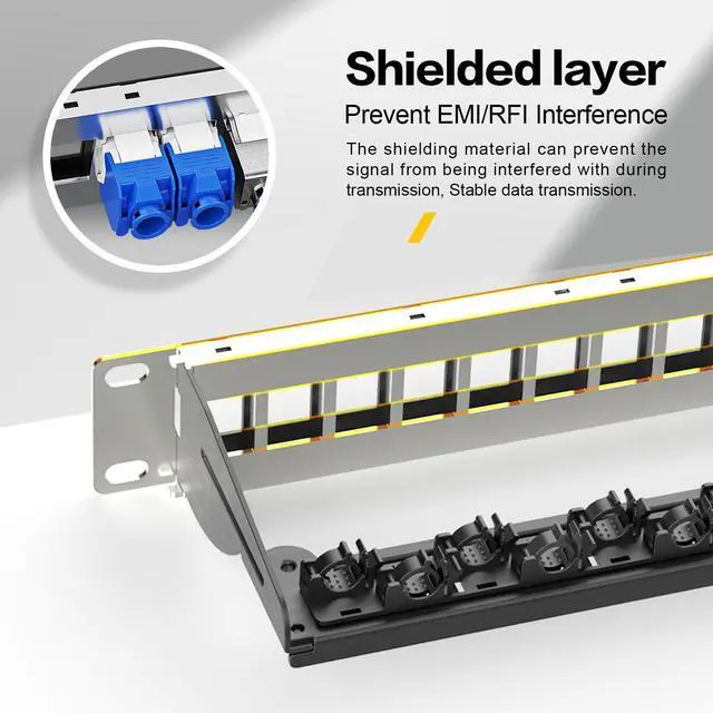 Blank Keystone Patch PanelA 24 port blank patch panel offers a versatile platform to organize and manage Ethernet connections. Supports standard sized keystone jack, such as HDMI keystone, RJ45 keystone, USB keystone, fiber keystone, 3.5 mm keystone, keystone jack insert and more. ^^ Durable ConstructionConstructed from sturdy materials such as steel, these panels ensure durability and long-term reliability. They are designed to withstand regular use and provide a stable platform for networking components. ^^ Easy InstallationFeaturing a standard design, installation is straightforward. Simply mount the panel on a compatible rack or enclosure using screws, and then populate it with keystone jacks, couplers, or modules as required.