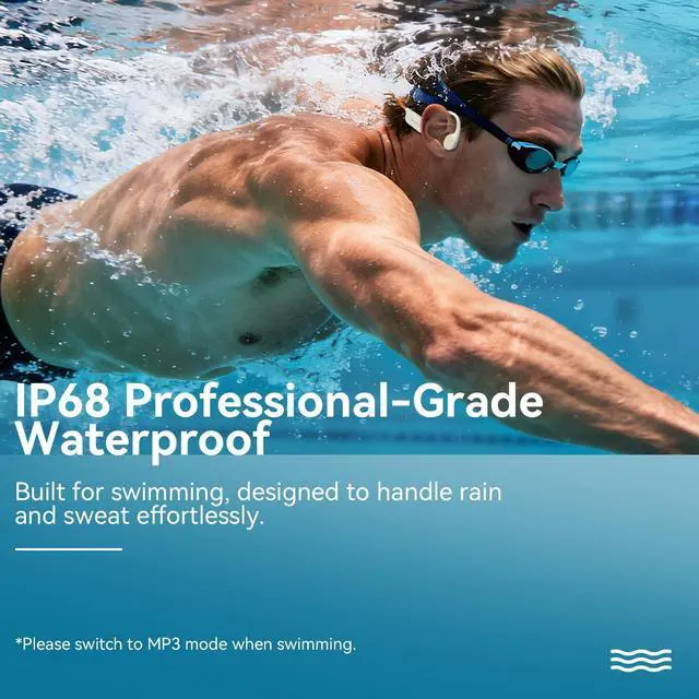 IP68 Professional-Grade Waterproof: Resists sweat and rain during sports. Submersible in 2-meter deep water for up to 2 hours, ideal for swimming or other underwater activities (Note: Switch to MP3 mode underwater; Bluetooth mode does not work underwater) ^^