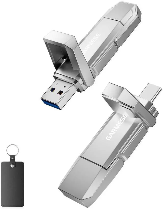 USB-C & USB-A Dual Interface: GARMESE dual USB flash drive designed with both USB-C and USB-A ports, this GARMESE dual USB drive eliminates compatibility issues across devices. this external SSD flash drive easily transfer files between Android Type-C phones, tablets, MacBooks, Windows PCs, laptops, smart TVs, car audio systems, gaming consoles, and moreno adapters required. ^^ True Plug & Play, Wide