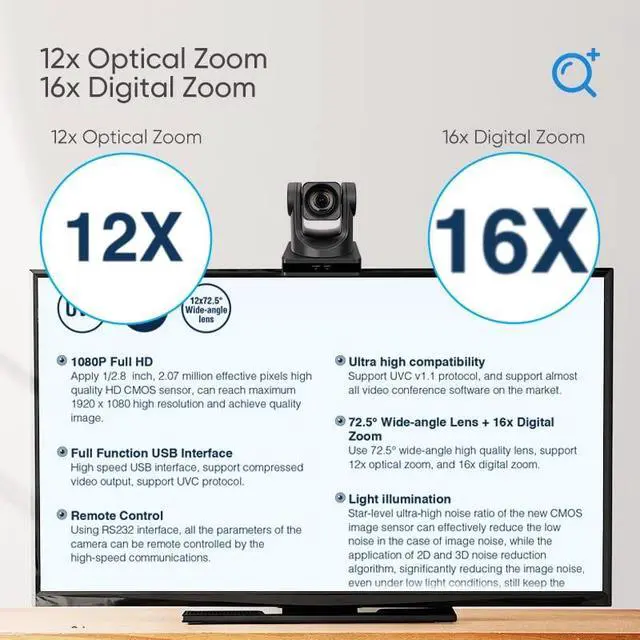 Protocol: VISCA/Pelco-D/Pelco-P Power Jack JEITA typeDC IN 12V/USB B typeDC IN 5V/PoEGeneric Specification Input Voltage DC 12V/DC 5V/PoE( 802.3 af) Power Consumption 12Wmax Size 144mm x 144mm x 167.9 mm